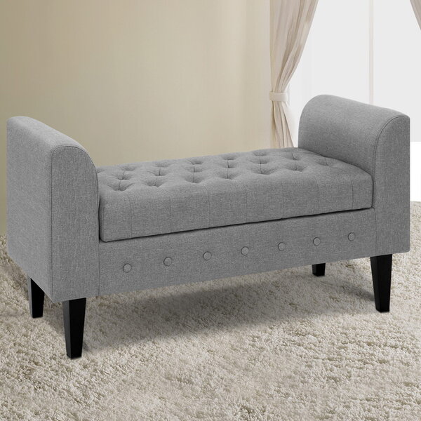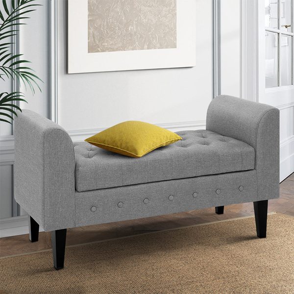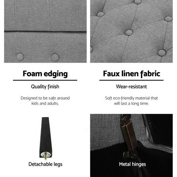 Storage Ottoman Blanket Box Linen Fabric Bed Foot Stool Chest Toy Bench