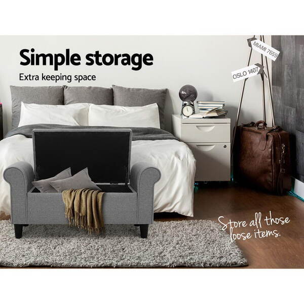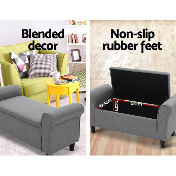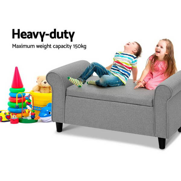 Storage Ottoman Grey Blanket Box Chest Large Foot Stool Linen Toy Bench