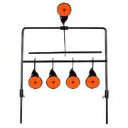This auto reset rotating target with 4 + 1 targets will be a great training aid to improve your shooting skills and accuracy. The auto reset rotating target is great for competitions or target practice. Shoot the four lower targets first and the upper middle target last to automatically reset without needing to walk downrange. With bright orange target stickers, the targets are extremely easy to see even from a far distance. Thanks to the heavy-duty steel frame with two extra support legs, our rotating shooting target is sturdy and built to last. It folds flat quickly for easy storage.