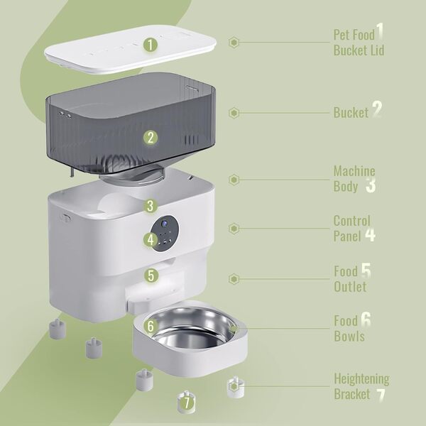 - Keep your pet's cervical spine healthy with this automatic feeder. This feeder includes a 304 stainless steel bowl and two sets of heightening brackets in two sizes - 2.5cm and 5cm - so you can adjust the feeder's height to fit your pet's growth stage. The stainless steel plates ensure maximum hygiene, so your pet can enjoy a clean meal every time.