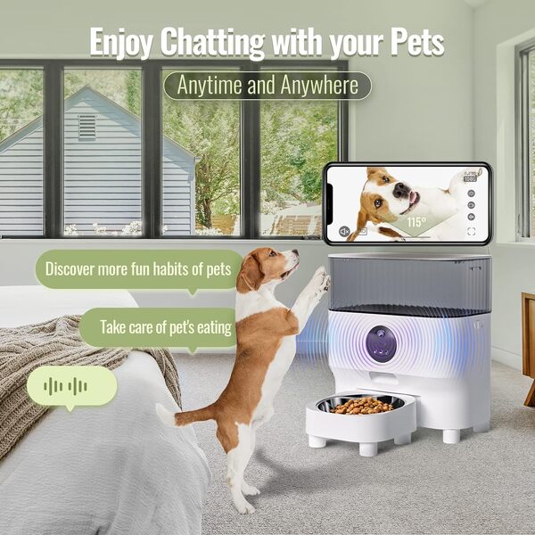 - Stay connected to your pet with this automatic feeder. Enjoy clear video and audio streaming on your phone with the easy-to-use app, and talk and interact with your pet from anywhere. Quick and easy setup: simply connect to your 2.4G WiFi router and match your feeder for a seamless connection.