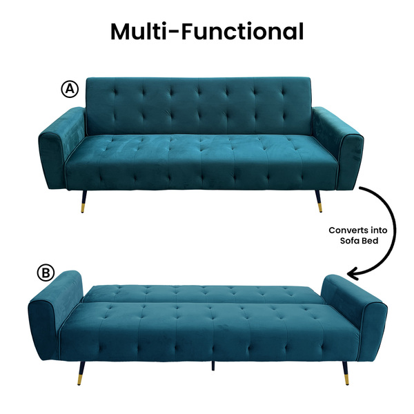 Ava Tufted Velvet Sofa Bed by Sarantino - Green