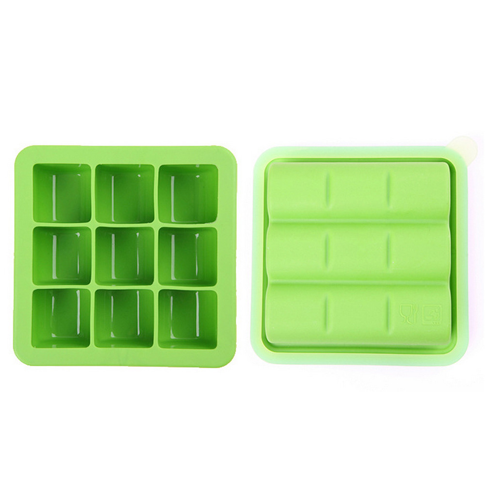 A smart and safe way to prepare and freeze baby food with a 9 portion 100% BPA FREE freezer container that includes safety hygiene lids. Prepare your babies food and keep it safely stored with the smart 9 part portion freezer tray. Made from 100% BPA Free Food-grade silicone with FDA approval. It also ensure your baby's food is protected from freezer burn or contamination and germs thanks to the smart suctioned cover lids. Made from 100% BPA Free FDA approved food grade silicone Freeze up to 9 separate baby food portion parts Durable safe and easy-to-clean - dishwasher safe
