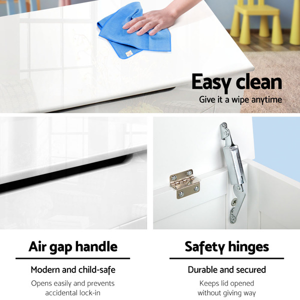 The toy box is made from 15mm MDF material for sturdiness and finished with a PU