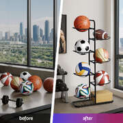 Organize sports gear effortlessly with 's 7-tier Ball Storage Rack. This heavy-duty Sports Equipment Organizer features sturdy steel frames, ideal for storing basketballs, footballs, or volleyballs in garages, gyms, or basements. The design ensures durability, while easy assembly saves time. Perfect as a space-saving Ball Holder for indoor/outdoor use.