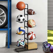 Ball Storage Rack Sports Equipment Organizer 7-Tier Holder for Garage Gym Black