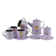 Introducing the graceful 13-Piece Ballerina Tin Tea Mug Set, a charming ensemble that brings the elegance and beauty of ballet to your child's imaginative tea parties! This delightful set features a beautifully illustrated print of a ballerina and delicate slippers adorning a soft pink backdrop, accentuated by a gentle purple trim, creating an atmosphere of poise and grace. Crafted for enchanting pretend play, this set is perfect for hosting delightful tea gatherings with family, friends, or your child's beloved dolls and teddy bears. It includes all the essentials for a perfect tea affair: 4 charming tea mugs, 4 dainty plates, a lovely tea pot with its own lid, a sugar pot adorned with a lid, and a delightful creamer, all neatly packaged in a vibrant color box. Created by Kaper Kidz, this tin tea set isn't just a toy; it's a gateway to creativity and social interaction. Encourage your child to curate their own enchanting tea parties, fostering moments of joy and camaraderie. However, please note that while this tea set mirrors the appearance of real tea service items, it's important to remember that they are intended for play and are not suitable for containing hot liquids or food. Watch as the 13-Piece Ballerina Tin Tea Mug Set becomes the centerpiece of delightful make-believe, inspiring your child to dance into a world of imagination filled with laughter, storytelling, and endless enchanting tea parties!