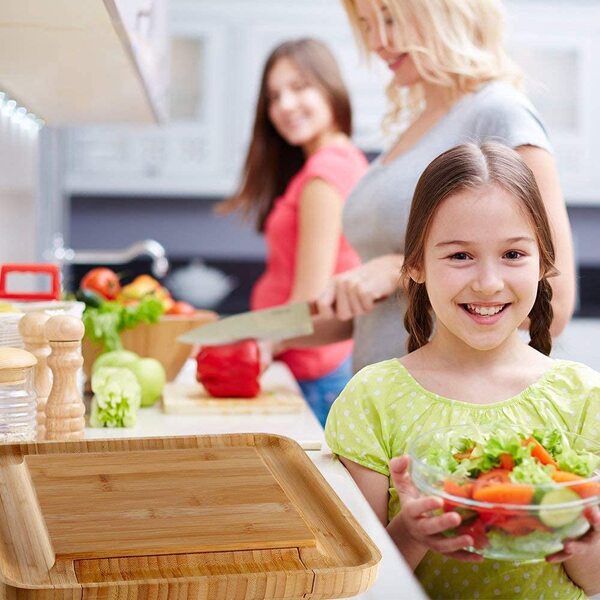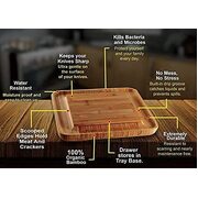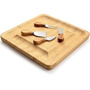 The Exclusive Choice for Serving Cheese-The key to enjoy slices of Italian Ricotta, English Cheddar, or French Vacherin with a glass of wine for holiday entertaining is to have our modern bamboo cheese board. Bordered by grooves that hold crackers, nuts, or olives and designed with a hidden drawer with four utensils, cheese knife.