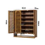 Bamboo Shoe Storage Cabinet 3 Doors Organizer Shelf Rack Brown