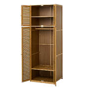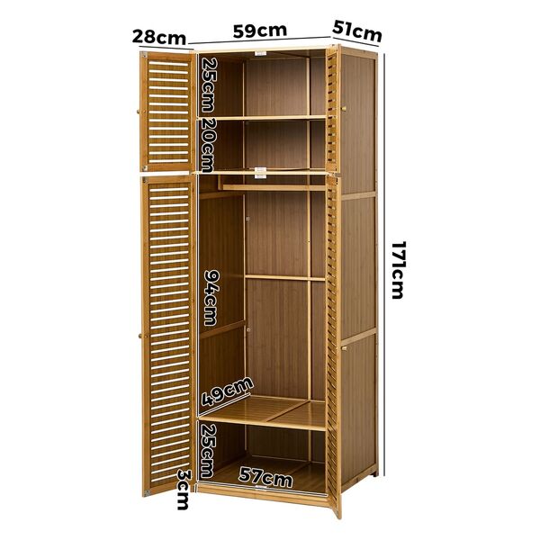 Bamboo Wardrobe 4 Door Storage Cabinet With Hanging Rod Natural Wood