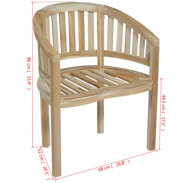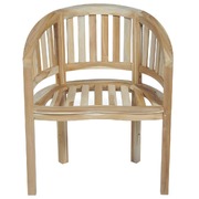 This wooden banana-shaped chair is comfortable and elegant and will look simply stunning in the garden or on the patio. Constructed from extremely durable teak hard wood, this piece of teak furniture has been seasoned, kiln dried and then fine sanded to give a very smooth appearance. Teak wood is known for its exceptional strength and weather resistance, making it far more suitable for garden furniture than any other kind of wood. Teak wood is the perfect choice if you want to purchase a long lasting piece of garden furniture. You can keep its natural colour or add a coat of paint or other finish in your favourite colour. It requires very little maintenance and care. This modern garden chair will make a stylish addition to your garden or patio; it is very suitable for relaxing or outdoor dining with your friends or family. We recommend to treat the product with teak oil or a waterbase finish to increase its lifetime.