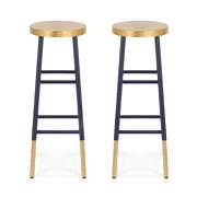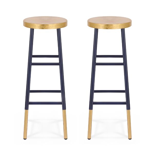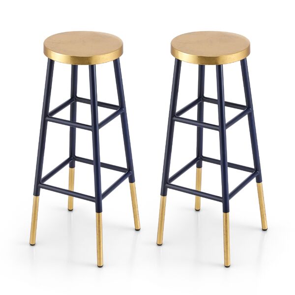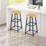 Bar Stool Metal Frame Gold Upholstered Seat Navy 2 Pack