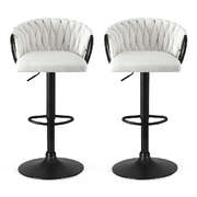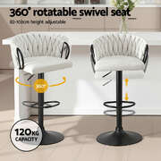 Bar stool x2 kitchen dining chair counter gaslift woven velvet ivory