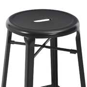This bar stool set which consists of 2 pieces, with a simple yet elegant design, will make a great addition to your dining room or kitchen. The stools are made of powder-coated steel, which makes them very sturdy, durable and easy to clean with a damp cloth. The reinforced legs add extra stability to the stools. Delivery includes 2 bar stools.