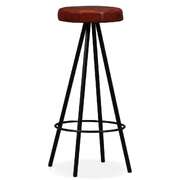 These bar stools have an industrial look and will make a distinctive addition to any home, bar or restaurant. The bar stools are upholstered in the soft-to-the-touch genuine leather, which makes the stools extremely durable and comfortable. The strong steel legs make the stools very sturdy and add to their spectacular industrial style. Delivery includes 4 bar stools. Assembly is easy.