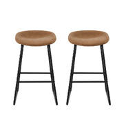 2x Bar Stools Kitchen Dining Chairs Counter Stool PU Leather Metal Brown