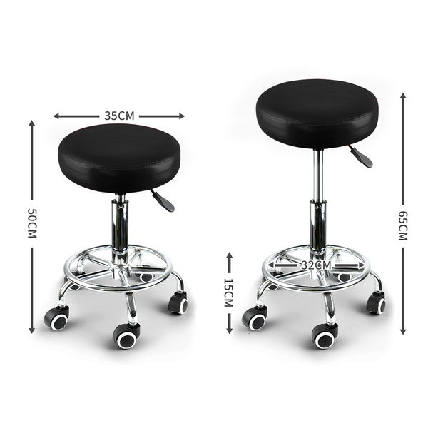 Salon Stool is designed to bring versatility and mobility to your workspace. Featuring with a PU leather seat with high density foam that offers maximum comfort. For best performance in variety of workplace, it comes with 360 o rotation , 5 smooth-rolling casters, and circular footrest. This comfortable stool is easy to clean and the perfect accessory for your office, massage room or spa.