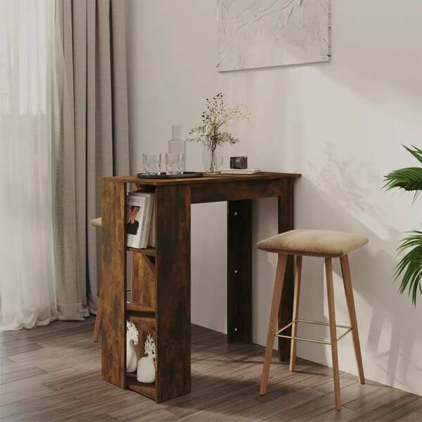 Bar Table With Shelf Smoked Oak Chipboard