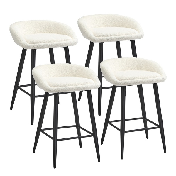 Bar Stools Set of 4 Kitchen Dining Chairs Counter Stool White Boucle