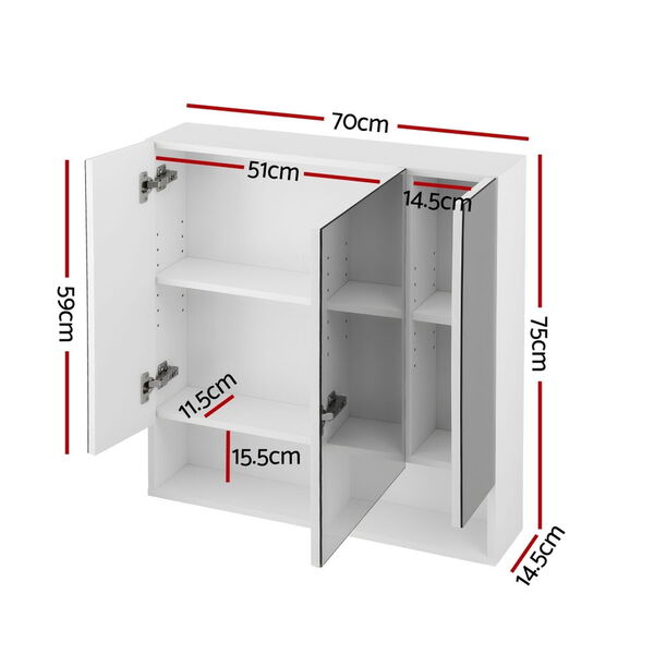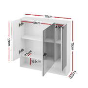Bathroom Mirror Cabinet Medicine Adjustable Shelves Wall Hung 700x750mm White