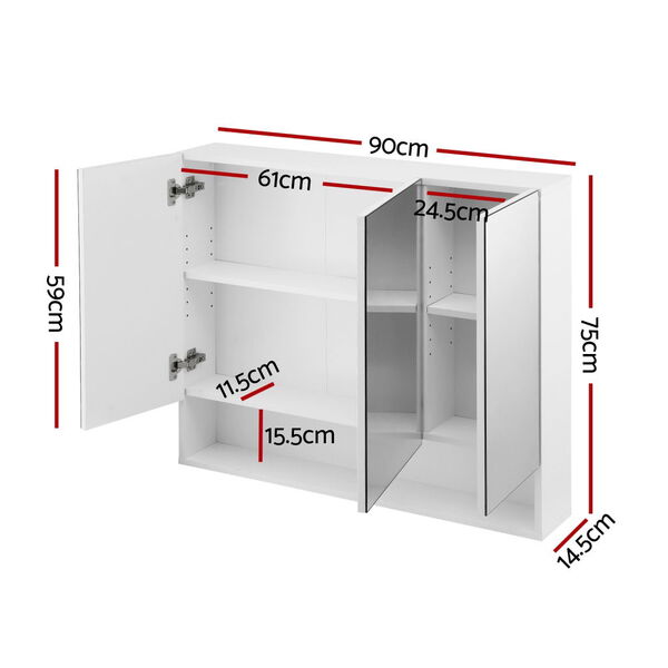 Bathroom Mirror Cabinet Medicine Adjustable Shelves Wall Hung 900x750mm White