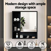 This sleek black mirror cabinet combines modern style with practical storage for your bathroom. The high-definition mirror provides excellent reflection while concealing generous storage space behind its seamless door. Adjustable shelves allow you to customise the interior layout for toiletries, medicines and personal items. Crafted from water-resistant PB melamine, this unit withstands humid conditions while maintaining its elegant appearance. Easy to install and maintain, it's the perfect solution for keeping essentials organised without compromising on style.