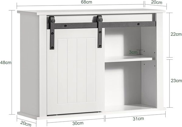 - This multi-purpose shelf is perfect for any home or office. It is lightweight yet sturdy, with a load capacity of 25kg and dimensions of W68 x D20 x H48cm. The package dimensions are L76 x W41 x H16cm and the weight is 9kg, making it easy to transport and install.