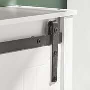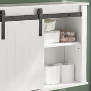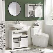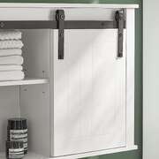 - This bathroom cabinet adds a stylish touch to your bathroom with its metal frame and sliding door. It provides an elegant storage solution for all your bathroom essentials, keeping them organized and out of sight.