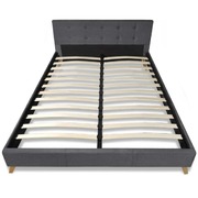 Create an elegant and classic look in your bedroom with our bed! The bed frame has a solid construction out of MDF and is durable and easy to maintain. Both the large headboard and the sides are upholstered in a high-quality fabric in an elegant colour. The slatted base offers the needed support and is also highly comfortable. With all these combined features, you will certainly have a good night's sleep! The bed frame is easy to assemble. Please note that the delivery includes a bed frame only, a mattress is not included.