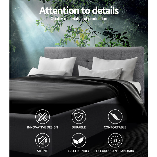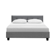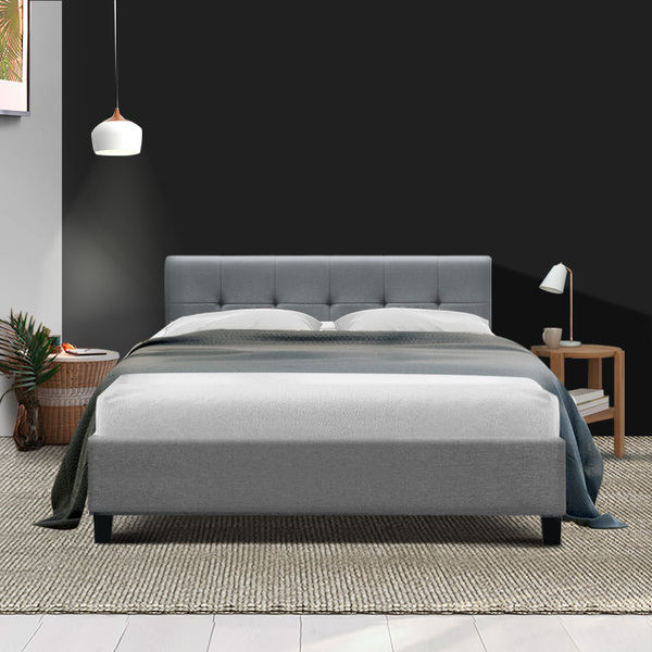 Bed Frame Double Size Base Mattress Platform Fabric Wooden Grey SOHO