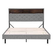 Elevate your bedroom with the Double Storage Bed Frame. Features smart RGB LED lights offering flexible ambiance settings. The practical headboard provides multi-layer shelving, while discreet under-bed space offers ample storage. Relax against the comfortable padded and tufted headboard. Built with a durable timber and steel frame and supportive LVL slats, this reliable platform bed frame supports double mattresses. The modern grey linen finish complements contemporary decor. Assembly is straightforward.