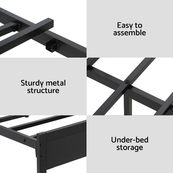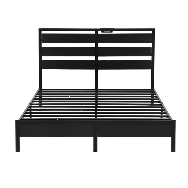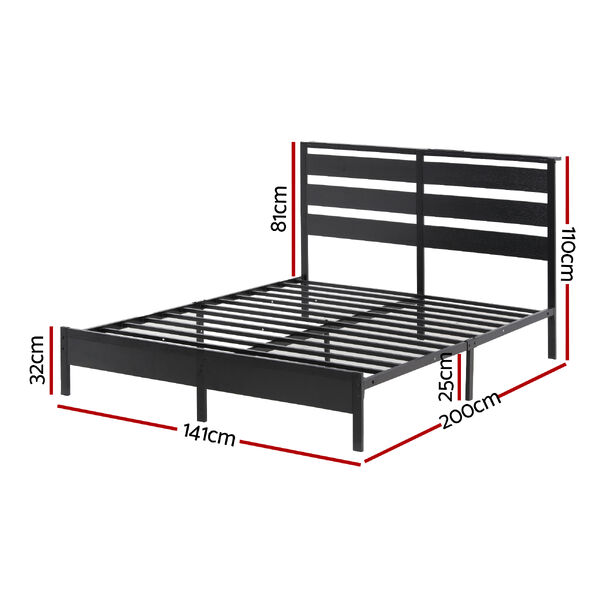 Bed Frame Double Size LED Metal Bed Base with Charging Station