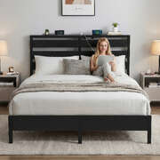 Transform your bedroom with POR metal bed frame that glows with style. Built-in LED strips offer 16 colours choices and multiple modes — Music, Mic, and Timing — to match your mood or playlist. Adjust colors and brightness through the mobile app for an immersive and personalized sleep space. The bed frame headboard shelves offer a convenient storage solution, keeping essentials within easy reach and providing an additional space for decorating your cherished home.This heavy duty metal platform bed frame with charging station,it is convenient for your tablets, cell phones or other electric devices.