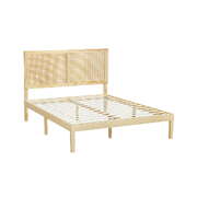 Bed Frame Double Size With Rattan Headboard Wooden Bed Base Bruno