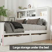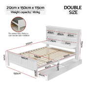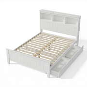 Bed Frame Double Size Wooden With 3 Shelves Bed Head White