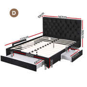 Bed Frame Double Upholstered with Storage Drawers and USB Type-C Charging