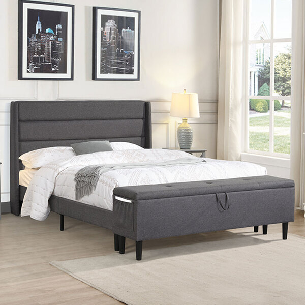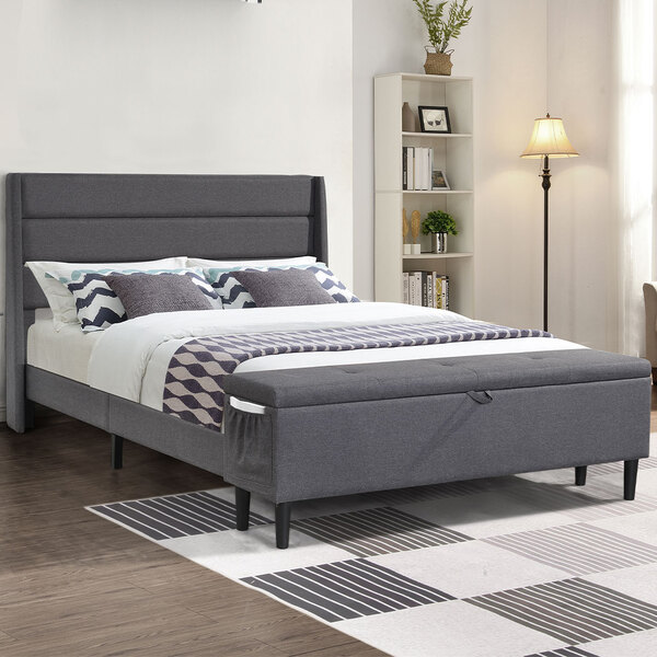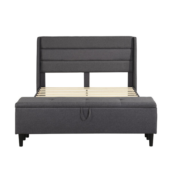 Bed Frame Fabric Queen Size Mattress Base Wooden Platform Storage Ottoman