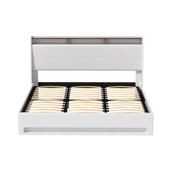 Bed Frame Gas Lift Led Beds Base Platform White Pvc Leather Storage