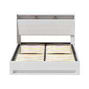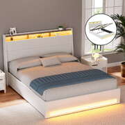 Bed Frame Gas Lift LED Beds Base Platform White PVC Leather Storage Headboard - Queen