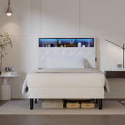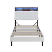 Bed Frame King Single Size with LED Storage Bedhead White