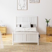 With its Hampton-style inspired design, the Wooden Bed Frame is just the perfect choice to liven up your sleepcapades. Clean and uncluttered, the charming bed frame is an oasis of calm and harmony that will match well with your favourite mattress and other bedside furniture. And that makes it ideal for use for both young and old alike.