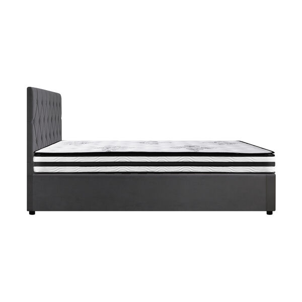 Bed Frame King Size Gas Lift Base with Mattress Velvet Grey