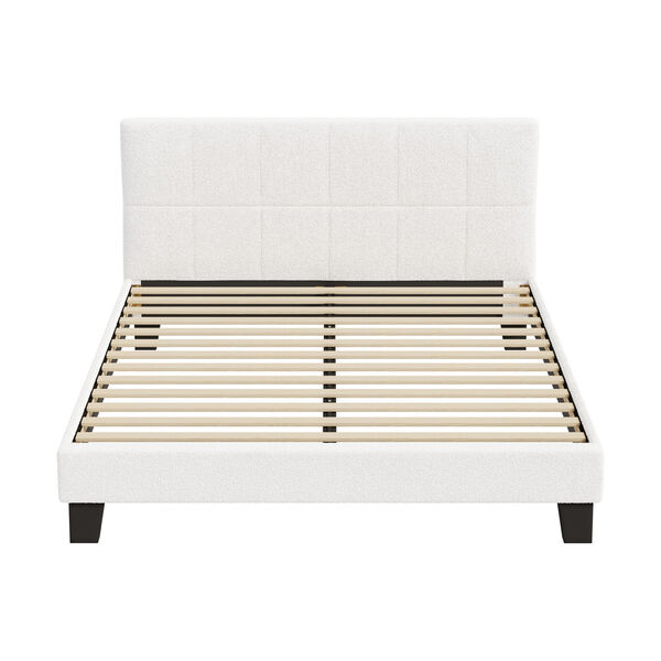 Bed Frame Queen Size Base White Boucle TOFU