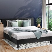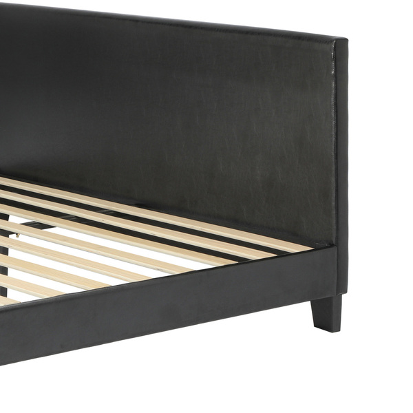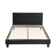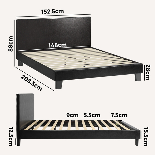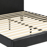 Bed Frame Queen Size Base Mattress Platform Leather Wooden Slats Black
