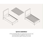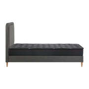 Featuring a tall and well-padded 3-D bedhead and upholstered with premium noir linen all around the bed frame, the Gas Lift Bed Frame exudes bespoke elegance and adds a luxurious presence to any bedroom decor. Sophisticated touches that lend a swank and intimate aura to accompany your calm and restful sleep. But there is more to the bed frame than just an attractive appearance. The finishing is meticulous with exacting workmanship all round. Inside, the 13mm thick reinforced plywood slats provide end-to-end support for the mattress while the sturdy legs ensure that the bed frame stands up to durable use time and again. Better still, setting up the bed frame is hassle-free with Velcro-enabled slats that simply fasten to the bed frame for better grip and stability. Best of all, the stylish bed frame also includes a comfortable Bedra Bedding pocketed springs mattress to complete the set. This high-quality knitted fabric spring mattress features all the benefits of an independent pocketed springs system that provides reinforced edging, motion isolation, anti-disturbance and full body support. Naturally, the highly breathable mattress complies with all required standards and certification and is hygienically safe from top to bottom and everything else in between. The Gas Lift Bed Frame. Made it yours to enjoy. Available in king single, double and queen sizes.