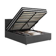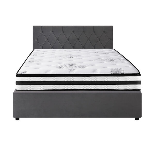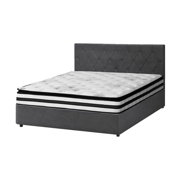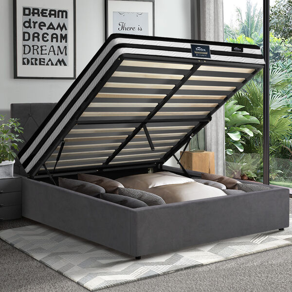Bed Frame Queen Size Gas Lift Base with Mattress Velvet Grey