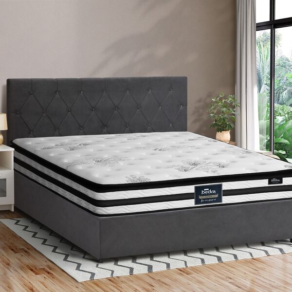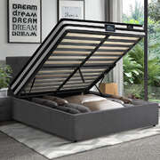 Featuring a tall and well-padded 3D tufted diamond-matrix bedhead and upholstered with premium velvet (grey model) all around the bed frame, the Gas Lift Bed Frame exudes bespoke elegance and adds a luxurious presence to any bedroom decor. Soft to the touch that lends a swank and intimate aura to accompany your calm and restful sleep. But there is more to the bed frame than just an attractive appearance. The finishing is meticulous with exacting workmanship all round. Inside, the 13mm thick plywood slats provide end-to-end support for the mattress while the sturdy legs ensure that the bed frame stands up to durable use time and again. Plus, the bed frame is definitely more than meets the eye. With its assisted hydraulic gas lift hinges, the bed can be easily brought up to reveal generous storage space for bedding and other assorted bedroom essentials. Best of all, the stylish bed frame also includes a comfortable Bedra Bedding Bonnell springs mattress to complete the set. This high-quality silver-ions knitted fabric mattress features all the benefits of a Bonnell springs system that provides reinforced edging, motion isolation, anti-disturbance and full body support. Naturally, the highly breathable mattress complies with all required standards and certification and is hygienically safe from top to bottom and everything else in between. The Gas Lift Bed Frame. Made it yours to enjoy. Available in king single, double, queen and king sizes.