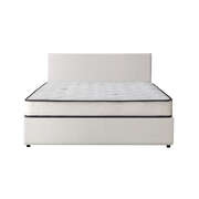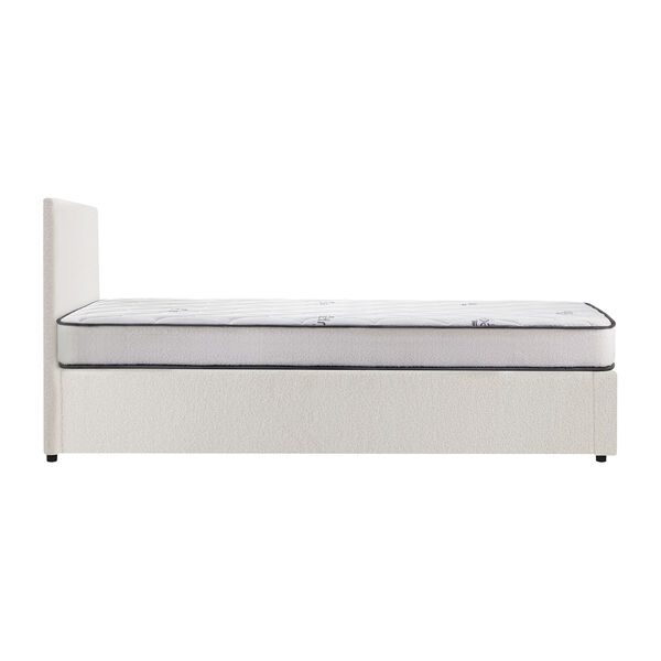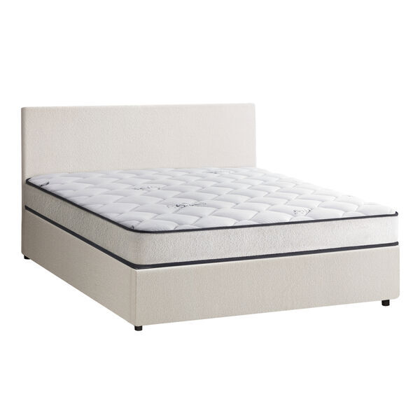 Featuring a tall and well-padded 3-D bedhead and upholstered with cosy boucle fabric all around the bed frame, the Gas Lift Bed Frame exudes bespoke elegance and adds a luxurious presence to any bedroom decor. Soft to the touch that lends a swank and intimate aura to accompany your calm and restful sleep. But there is more to the bed frame than just an attractive appearance. The finishing is meticulous with exacting workmanship all round. Inside, the 13mm thick reinforced plywood slats provide end-to-end support for the mattress while the sturdy legs ensure that the bed frame stands up to durable use time and again. Plus, the bed frame is definitely more than meets the eye. With its assisted hydraulic gas lift hinges, the bed can be easily brought up to reveal generous storage space for bedding and other assorted bedroom essentials. Best of all, the stylish bed frame also includes a comfortable Bedra Bedding Bonnell springs mattress to complete the set. This high-quality knitted and boucle fabric spring mattress features all the benefits of a Bonnell springs system that provides reinforced edging, motion isolation, anti-disturbance and full body support. Naturally, the highly breathable mattress complies with all required standards and certification and is hygienically safe from top to bottom and everything else in between. The Gas Lift Bed Frame. Made it yours to enjoy.