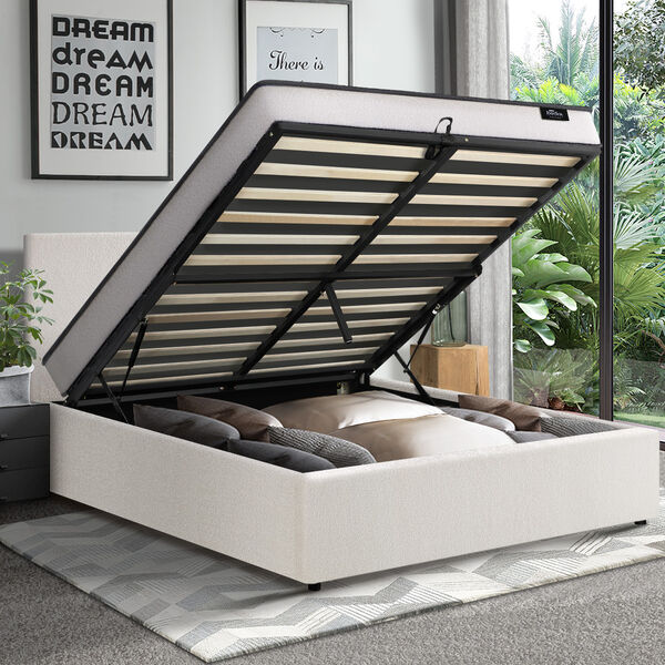 Bed Frame Queen Size Gas Lift Boucle Beds With Mattress Set