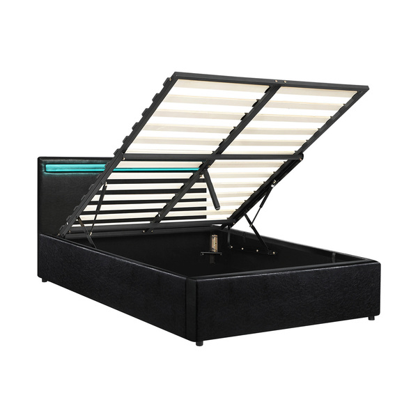 Bed Frame RGB LED King Single Gas Lift Storage Base Black